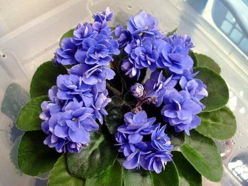 Неприхотливый. Содержать в классических горшках 5-6 см. После такого обильного цветения розетку надо радикально омолаживать. Насыщенность тона окраса цветка может меняться, если долго не пересаживать в свежую землю, то он зацветает практически синими цветочками.