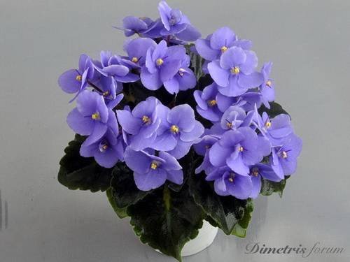 Неприхотливый, зацветает рано и сразу пышно. Сорт спортит не часто, дает светлый вариант или белый с темно- лиловым центром. Детка спорта со светлыми листьями.