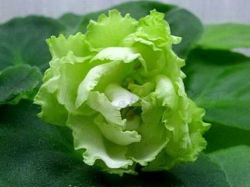 Средне-зеленая стеганная волнистая, иногда ложковидная листва. Стандарт. Листья крупные волнистые, розетка крупная.