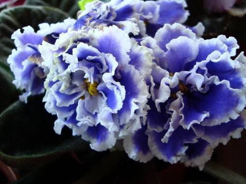 Цветы на самом деле долго распускаются и долго держатся. Как у всех фиалок с женева-краем белая окантовка в жару может исчезать, но с понижением температуры появляется вновь.