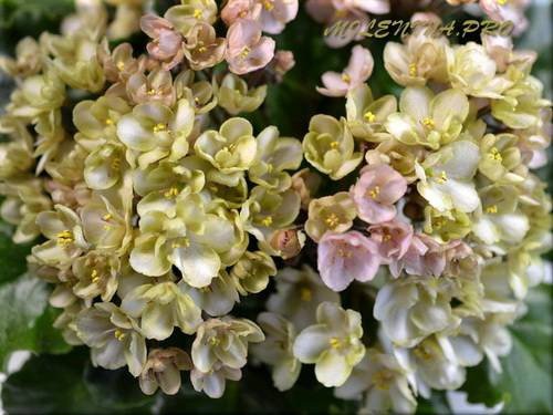 Маленькие зеленые цветочки с чуть заметной перламутровой розовинкой! Есть светлее, почти без розового оттенка, есть вроде бы еще розовее. Ну и от температуры зависит — розовый в холода почти исчезает. Цветов — целая клумба.