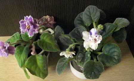 У взрослой фиалки отсутствуют ювенильные листья. Черешки листьев толще, листовые пластинки крупнее. Цвет их более насыщенный, темный. Если листья стеганые, то их поверхность становится просто бугристой. С возрастом они делаются менее эластичными. Диаметр стволика у таких растений в 1,3-1,5 раза больше, нежели у молодых. У взрослых растений резко снижается склонность к пасынкованию. Но принципиальное отличие между взрослой и молодой фиалкой — это качество цветения. У зрелых экземпляров цветки крупнее, цветоносов много и они более прочные, цветков тоже гораздо больше. У махровых сортов цветки махровые, а не простые или полумахровые, что зачастую наблюдается у молодых растений. Хорошо проявляются широкие белые каемки, обильно гофрированный край.