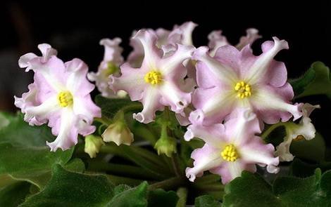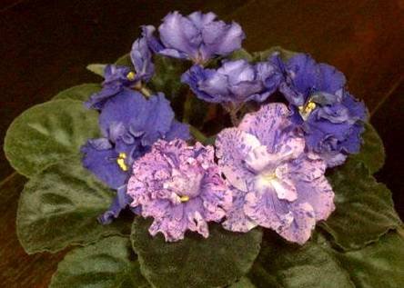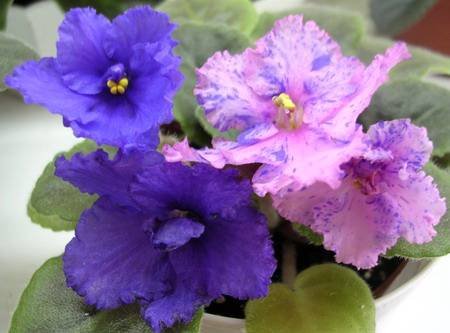 Существует понятие затемнения цветка. Так, двухцветные фиалки могут затемняться с возрастом, с увеличением кислотности почвы или повышением температуры. Один и тот же сорт может цвести у вас по-разному на подоконнике и на стеллаже, летом и зимой, сейчас и через год. Это же касается и зеленых рюш. Тут тоже работает закон низких температур чем ниже температура тем выразительнее и шире зеленая рюша. Поскольку природные виды узамбарских фиалок имели характерную фиолетово-синюю окраску, цветки современных гибридов, уходя в спорты, чаще всего стремятся затемниться.