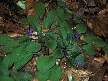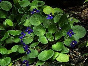 Saintpaulia ionantha (H. Wendl) — Сенполия фиалкоцветная, узамбарская фиалка. Многлетнее травянистое растение с укороченным сочным стеблем, несущим розетку листьев. Листья длиной до 8 см., черешковые, сердцевидные в основании, широкоовальные или округлые, с волнистым слабогородчатым краем, темно-зеленые, снизу красноватые, сильноопушенные. Цветки собраны в 2-7 цветковых соцветия, на длинных пазушных цветонасах. Венчик темно-фиолетовый с пятилопастным двугубым отгибом (2 лопасти короче 3 других). Плод-густоопушенная коробочка.