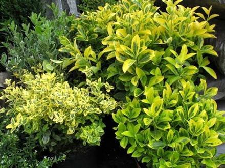 Euonymus Silver King. Euonymus Sunspot.