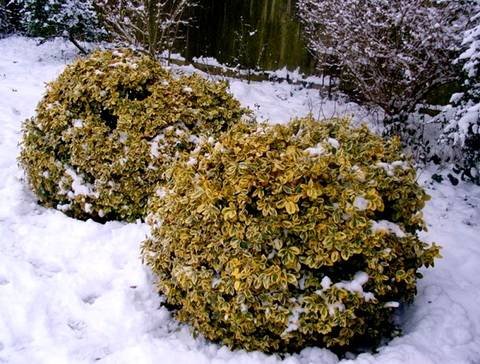 Кусты теряют много влаги из листьев, особенно в сильный ветер, а мелкая корневая система не может восполнить недостаток воды из мерзлой земли. Поэтому до наступления морозов примерно в середине ноября насаждения нужно замульчировать грунт вокруг компостом или лапником. После зимы у бересклета укрытия снимают, как только днем устанавливается плюсовая температура. Если в марте над кустом большой слой снега, то его надо тоже разбросать, так как в плюсовую погоду под снегом куст может выпреть. Когда навалит снег, надо сбивать его с кустиков, иначе под тяжестью снега начинает сильно сгибаться ветви и могут обломиться.