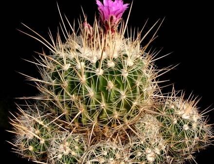 Цветки воронковидные, в диаметре 2,5 см, лепестки пурпурно-фиолетовые с продольной темной полоской посередине. Доли околоцветника продолговато-линейные, острые. Простой в уходе кактус, рекомендуемый для любой коллекции, которая нуждается в большом количестве света с достаточным потоком воздуха. Этот вид зацветает даже тогда, когда совсем маленький, но нуждается в большом количестве солнца. Становится бронзовым при сильном освещении, что способствует цветению. Пересадка каждые два года. Зимой его не следует поливать.