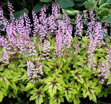 Heucherella Pink Whispers. Heucherella Citrus Shock.