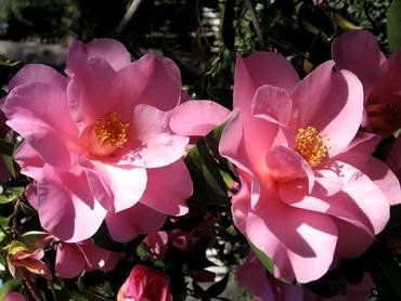 Camellia Debutante Pink. Camellia Red Rose.