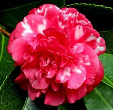 Camellia “Adolphe Audusson”. Красные махровые цветы до 12-13 см диаметром.