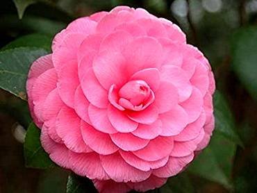 Camellia “Pink Perfection”. Махровые розовые цветы 7-8 см в диаметре.