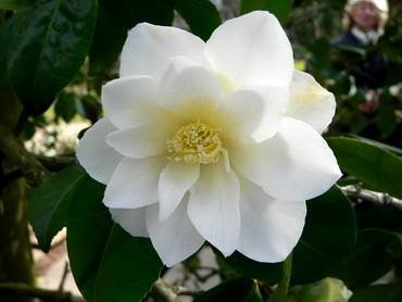 Camellia “Japonica Purity”. Растение с белыми цветами до 8 см в диаметре.