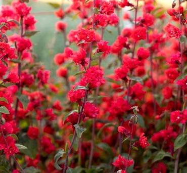 Кларкия “Рубиновая”. Растения высотой до 60 см. Многочисленные махровые цветки насыщенно красного, рубинового цвета.