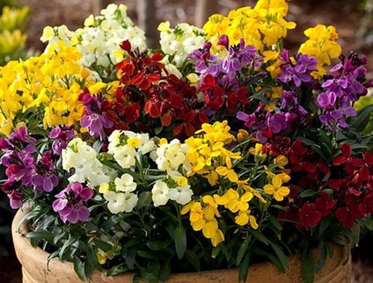 Erysimum “Prince”. Высотой 20 см с простыми соцветиями, цветовая палитра включает пять оттенков.