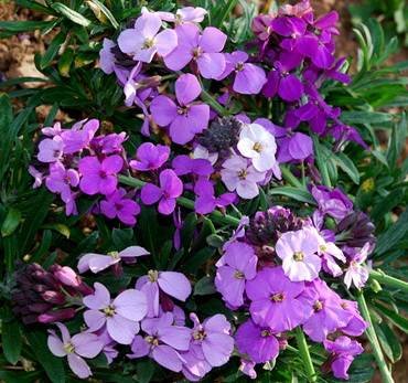 Erysimum “Julian Orchard”. Обильные грозди ароматных цветов в ярко-розовой и фиолетовой комбинации.