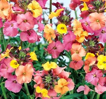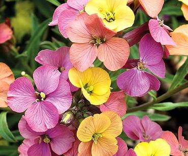Erysimum “Fair Lady”. Высотой 50 см с цветами пастельных тонов.
