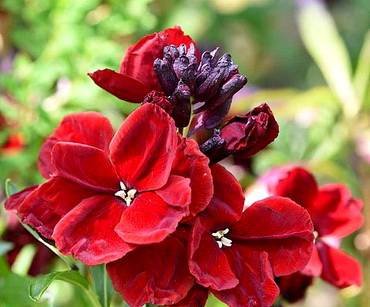Erysimum Blood Red”. Высотой 50 см с бархатисто-красными цветами.
