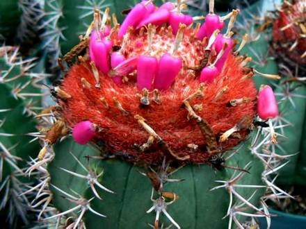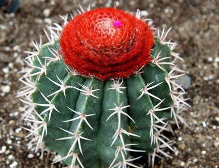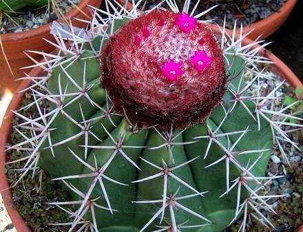 Мелокактус – кактус с крупными ареолами и яркой шапкой на верхушке стебля