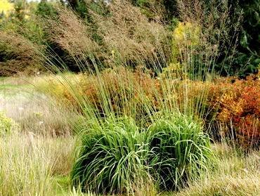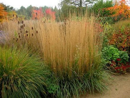 Molinia caerulea arundinacea — Молиния тростниковая. Она растет практически в каждом лиственном лесу в пределах Европы, где достаточно света. Многолетний куст, который летом имеет зеленую окраску, а осенью — золотистую. Кусты отличаются пышностью и объемностью, в высоту могут достигать 70-110 сантиметров. Соцветия — рыхлые метелки коричневого или бурого цвета, раскрываются с июля по сентябрь. Цветонос немного наклоненный. Особенно красивым куст становится при достижении трехлетнего возраста. Тончайшие листья красиво развиваются по ветру. Просыпается поздно весной.