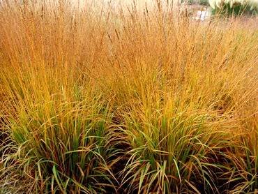 Molinia “Cordoba”. (Кордоба). Куст с плотной листвой, высотой 150-180 см. Листья широкие, густые, зеленые с темными разводами. Метелки изящные, золотисто-желтые, сильно разветвленные.