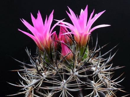 Цветки крупные, от трубчатых до узких воронкообразных, с различными оттенками пурпурно-розового, до 5 см в длину и в диаметре, появляются на верхушке растения на молодых ареолах. Цветет в конце лета. Лучше выращивать его на собственных корнях ради красивых колючек, хотя растет он медленно. Кактусу требуется достаточно солнца и хорошая вентиляция, поэтому желательно помещать его летом на открытом воздухе защищая от дождей. Нуждается в большом количестве места для своих крупных корней, пересадку следует проводить раз в два года. Чувствителен к гниению, особенно после посадки. Используйте горшок с хорошим дренажом. Вырастить его в крупный зрелый образец — непростая задача.