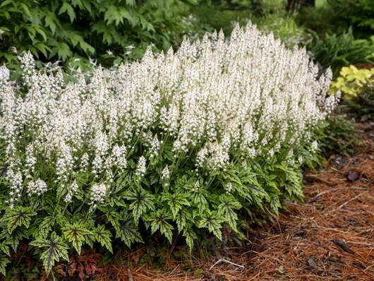 Часто бывает так, что в саду остаются нетронутыми затененные участки, ведь далеко не каждое декоративное растение может развиваться и цвести без солнечных лучей. Это, в свою очередь негативно отражается на оформлении сада, ведь пустоты совсем не украшают. В данном случае стоит обратить внимание на тиареллу — почвопокровный тенелюбивый цветок, который в затененных местах прекрасно растет, быстро наращивает листовую массу и формирует большое количество бутонов.