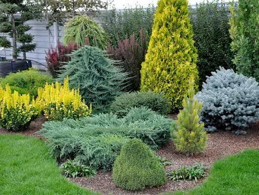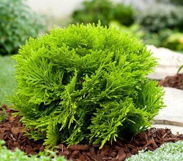 Шаровидные. Растут очень медленно (ежегодный прирост – не более 8 см), разрастаясь равномерно во все стороны, благодаря чему даже без корректирующей обрезки приобретают форму шара. Обычно высаживают группами, обустраивая альпийские горки и каменные сады. Низкорослые растения используют на клумбах и миксбордерах, выращивают в контейнерах.